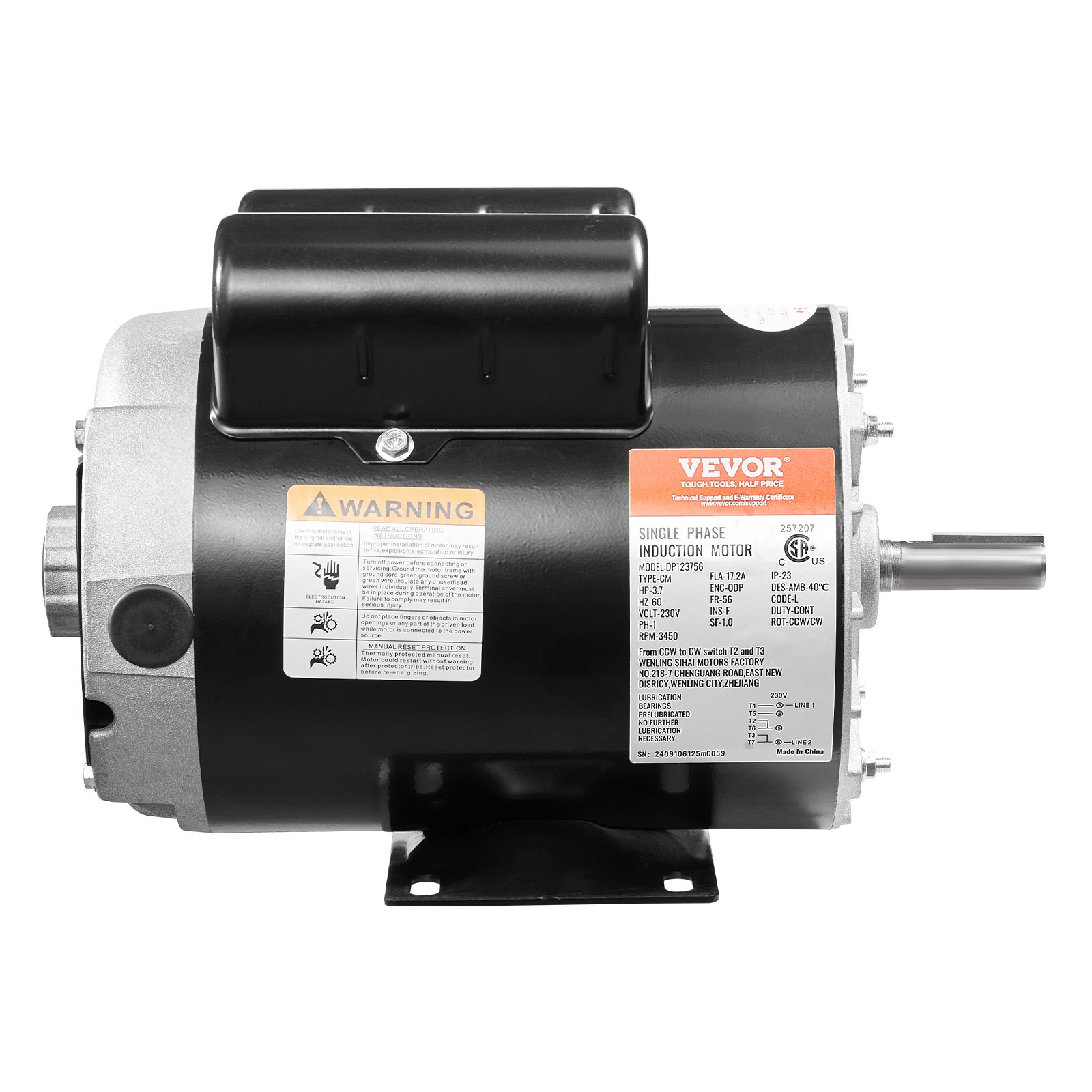 3.7HP Air Compressor Electric Motor 230V 17.2A 3450RPM 56 Frame CW/CCW Rotation (Factory Setting Is CCW)